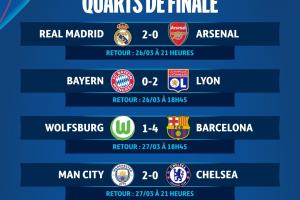 次回合比賽將于下周進(jìn)行,3月27號(hào)里昂女足對(duì)陣拜仁女足、阿森納女足對(duì)陣皇馬女足,28號(hào)巴薩女足對(duì)陣沃爾夫斯堡女足、切爾西女足對(duì)陣曼城女足。