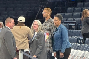 體育資訊03月20日訊 NBA常規(guī)賽,雷霆主場迎戰(zhàn)76人,前雷霆球員、現(xiàn)國王老板女兒安佳麗的男友杰里米-蘭姆現(xiàn)場觀戰(zhàn)。