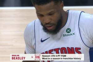 截止第三節(jié)比賽,比斯利投進4個三分。本賽季累計投進270個三分,創(chuàng)造隊史單賽季三分球命中紀錄。