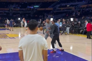 本場(chǎng)繼續(xù)因傷缺陣的湖人前鋒八村塁在賽前進(jìn)行了一組投籃訓(xùn)練。