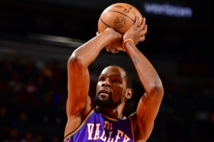 杜蘭特上半場出戰(zhàn)18分鐘,10投6中,三分4中2,罰球4中3砍下17分2籃板4助攻,正負值+18。