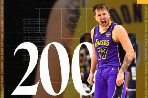 比賽第三節(jié)戰(zhàn)罷,東契奇已經(jīng)砍下31分。湖人官推曬照祝賀東契奇,砍下生涯第200個(gè)30+。