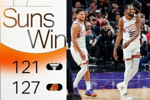 體育資訊3月20日訊 NBA常規(guī)賽,太陽127-121擊敗公牛。