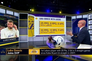 據(jù)統(tǒng)計(jì),在東契奇加盟湖人后,在他和詹姆斯同時(shí)出場(chǎng)的比賽中,東契奇場(chǎng)均25分8籃板8助攻;在詹姆斯缺席的比賽中,東契奇場(chǎng)均30分10籃板9助攻。