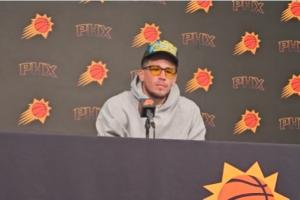 賽后,布克在接受采訪時(shí)因手機(jī)使用時(shí)間過(guò)長(zhǎng)而佩戴了藍(lán)光眼鏡,對(duì)此他表示:“我正在嘗試一切辦法。”