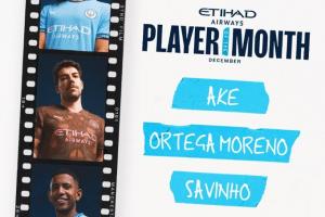 體育資訊12月31日訊 今日,曼城官方公布了12月隊(duì)內(nèi)最佳球員候選人,阿克、奧爾特加和薩維尼奧在列。