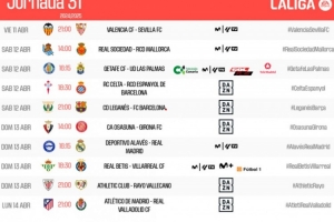 體育資訊3月20日訊 西甲官方公布了第31輪比賽的開球時(shí)間,萊加內(nèi)斯vs巴薩4月13日3點(diǎn)開球,阿拉維斯vs皇馬4月13日22點(diǎn)15分開球。