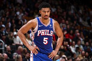 此役76人后衛(wèi)格萊姆斯打了32分鐘21投10中,三分7中3、罰球6中5空砍28分2籃板5助攻3搶斷,有5失誤。
