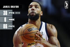 奧卡福本賽季在G聯(lián)盟出戰(zhàn)3場比賽,場均登場32.5分鐘可以砍下21.7分9.3籃板3.7助攻,投籃命中率高達80.6%,三分命中率為0%(場均出手0.3個),罰球命中率是100%。