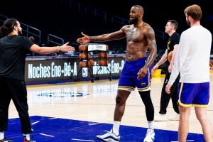 體育資訊3月21日訊 今日,NBA記者Mark Medina在比賽現(xiàn)場發(fā)推報道了湖人前鋒詹姆斯的動態(tài)。