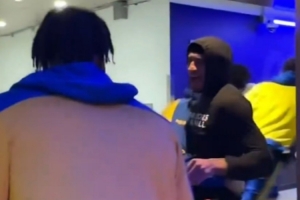 賽前勇士眾將在球員通道加油,本場(chǎng)缺席的小佩頓跑過(guò)來(lái)“搗亂”,和桑托斯抱成一團(tuán),可以看出來(lái)隊(duì)內(nèi)氛圍融洽。
