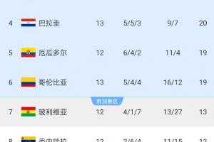 在南美世預(yù)賽基本榜上,巴西升至第2!多賽1場落后榜首阿根廷4分