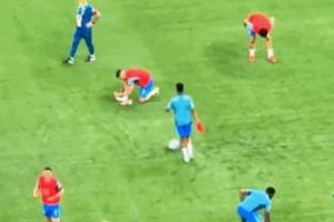 本場比賽17歲的巴西小將埃斯特旺替補未出戰(zhàn),在熱身時埃斯特旺挑球過掉正在穿鞋的隊友。