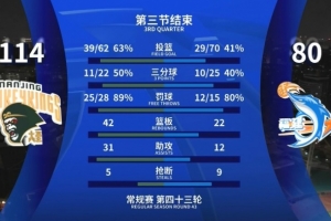 體育資訊3月21日訊 CBA常規(guī)賽,同曦三節(jié)過后114-80大比分領(lǐng)先福建。