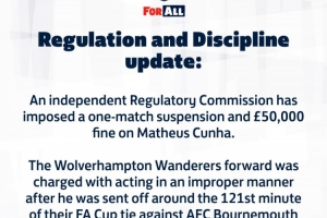 今天,英足總公布了對庫尼亞的罰單。英足總表示:“獨立調(diào)查委員會決定對庫尼亞追加禁賽一場、罰款5萬英鎊。在對陣伯恩茅斯的足總杯比賽中,這名狼隊前鋒在第121分鐘被罰下時出現(xiàn)不當行為。隨后,這名球員承認了指控。在4月13日星期日前,庫尼亞禁止參與英格蘭國內(nèi)足球賽事。”