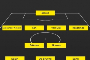 中場:埃里克森(曼聯(lián))、安赫爾-戈麥斯(里爾)、薩拉赫(利物浦)、德布勞內(nèi)(曼城)、薩內(nèi)(拜仁)