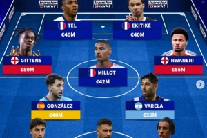 中場:吉滕斯(英格蘭,5000萬)、尼科-岡薩雷斯(西班牙,4000萬)、恩佐-米洛(法國,4200萬)、阿蘭-瓦雷拉(阿根廷,3500萬)、恩瓦內(nèi)里(英格蘭,5500萬)
