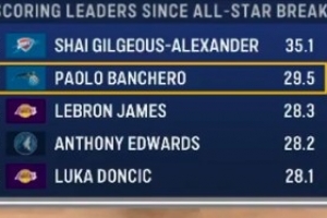 體育資訊3月22日訊 據(jù)統(tǒng)計,全明星假期后的聯(lián)盟場均得分前五球員如下: