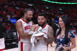 賽后,范弗里特在場(chǎng)邊接受記者采訪,狄龍瘋狂送夸獎(jiǎng),前者都被整害羞了。