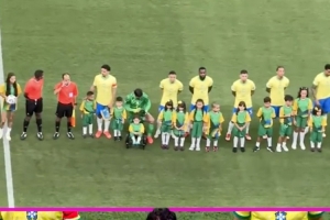 此役阿利森擔(dān)任巴西隊首發(fā)門將,他在賽前列隊奏國歌時單膝跪地,以照顧身前坐輪椅的球童,避免身高差太大。