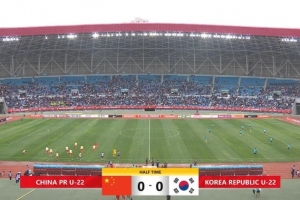 上半場比賽結(jié)束,U22國足主場暫時0-0戰(zhàn)平韓國。