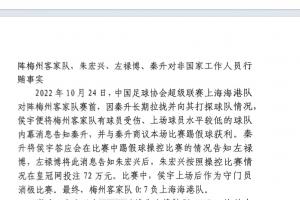 2022年10月24日,中超聯(lián)賽上海海港隊(duì)對(duì)陣梅州客家隊(duì),朱宏興、左祿博、秦升對(duì)非國(guó)家工作人員行賄事實(shí)