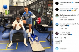 勞塔羅和小圖拉姆都因傷退出國(guó)家隊(duì)名單,回到俱樂部恢復(fù)。勞塔羅在社交媒體上曬出與小圖拉姆在健身房?jī)?nèi)的合照,并配上了藍(lán)黑之心和碰拳的表情符號(hào)。
