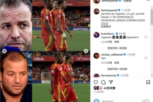 晉級之后,亞馬爾在社交媒體上曬出自己的賽場照,以及范德法特的照片,并寫道:“球褲低穿、打進一球、點球失手、晉級半決賽。哈哈哈,西班牙加油!”