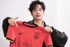 體育資訊3月24日訊 在個人社媒,歌手張顏齊曬出武磊to簽的國足球衣。