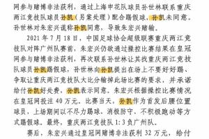 網(wǎng)傳“假賭黑”判決書,孫世林聯(lián)系孫凱踢假球致重慶1-3輸廣州,自己得到14萬,“僅”付孫凱2萬。