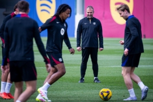 Víctor Navarro在社交媒體上傳了兩人訓(xùn)練的照片,并配文寫道:“兩名球員今日回歸:孔德和德容在弗里克的微笑注視下訓(xùn)練。”