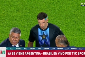 阿根廷門將馬丁內(nèi)斯已經(jīng)為國(guó)家隊(duì)出戰(zhàn)50場(chǎng)比賽,阿根廷足協(xié)主席塔皮亞賽前向他頒發(fā)了紀(jì)念品。