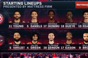 老鷹首發(fā):特雷-楊、丹尼爾斯、奧孔武、默罕默德-蓋耶、里薩謝。