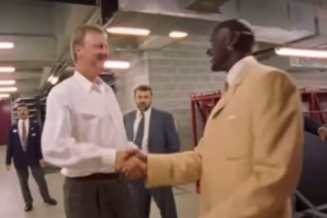 本場(chǎng)比賽,巴特勒在被交易后首次迎戰(zhàn)老東家熱火。賽前,樂(lè)福在INS轉(zhuǎn)發(fā)了邁克爾-喬丹與拉里-伯德打招呼的視頻,并寫道:“當(dāng)吉米在今晚的比賽中看到我時(shí)就是這樣的。”