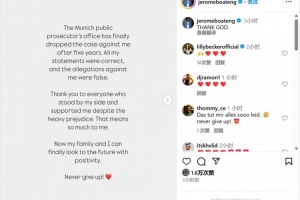 體育資訊3月27日訊 博阿滕更新社媒,慶賀針對(duì)他的家暴指控被撤銷。