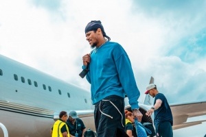 今天,火箭官推曬出了球員的登機照,杰林-格林的藍色靴子很是惹眼。