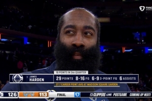此役過后,哈登生涯在麥迪遜廣場花園比賽的場均得分來到27.7分。
