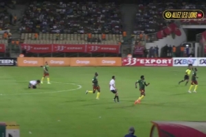 目前效力于北京國安的喀麥隆后衛(wèi)恩加德烏第84分鐘倒鉤解圍導(dǎo)致抽筋,當(dāng)時喀麥隆3-0領(lǐng)先,喀麥隆門將奧納納為恩加德烏壓腿,恩加德烏起身后與奧納納相視而笑。
