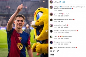 他也在賽后通過社媒曬出自己的慶祝照,并配文:“全隊(duì)踢出了一場(chǎng)精彩的比賽!繼續(xù)加油,巴薩永遠(yuǎn)前進(jìn)!”