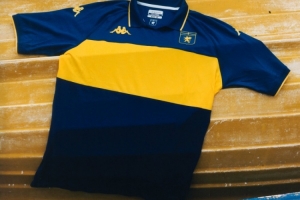 新球衣就是為了慶?!癤eneizes”(熱那亞人,博卡的別稱)俱樂部創(chuàng)立120周年,這是世界上最成功的俱樂部之一,由熱那亞移民在博卡街區(qū)創(chuàng)立。新球衣以海軍藍為基底,胸前采用黃色寬條:用來致敬博卡青年的標志性配色,胸前還有不可或缺的獅鷲隊徽。領口采用polo設計,衣領后方印有ZENEIXI,也就是“熱那亞人”的方言版。