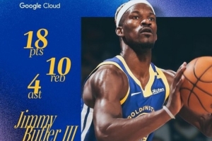 賽后勇士官方發(fā)布數(shù)據(jù)海報(bào),將巴特勒評(píng)為本場(chǎng)最佳球員。