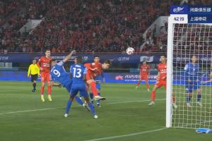 比賽第41分鐘,申花后防混亂,邁達納頭球破門,河南1-0領(lǐng)先申花!
