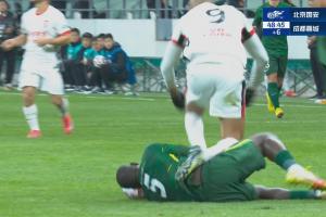 比賽上半場補時階段,費利佩倒地時踩到恩加德烏腹部,兩隊爆發(fā)沖突,馬寧趕緊拉開兩方球員。場上比分國安1-0蓉城。