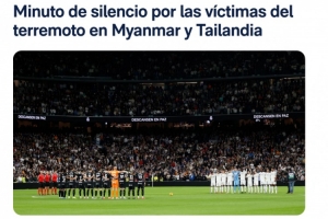 皇馬官網(wǎng)寫道:圣地亞哥-伯納烏球場(chǎng)在皇家馬德里與萊加內(nèi)斯的比賽開始前默哀一分鐘,悼念緬甸和泰國地震中的數(shù)千名遇難者。兩隊(duì)球員都佩戴了袖標(biāo)。