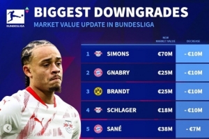 體育資訊3月30日訊 《轉(zhuǎn)會(huì)市場(chǎng)》在此前更新了德甲球員身價(jià),并列出了身價(jià)貶值幅度最大情況,格納布里等4人下降最多。