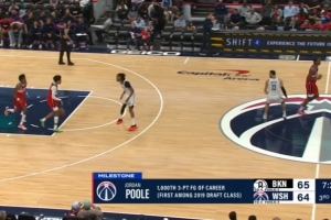 比賽來到第三節(jié),普爾投進三分,至此,他的生涯三分命中數(shù)來到1000個!
