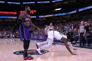 最終判罰:JJJ假摔技犯!但因?yàn)橹蟮那驒?quán)無歸屬,所以湖人罰完技術(shù)罰籃之后雙方中圈跳球!