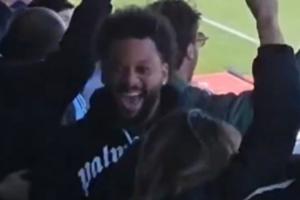 今日U19馬德里德比,皇馬U19vs馬競U19。馬塞洛15歲的兒子恩佐-阿爾維斯上演皇馬U19首秀,貢獻一次腳后跟助攻,看臺上恩佐的父親馬塞洛興奮地拍手慶祝,除了馬塞洛之外,安切洛蒂也攜皇馬教練組一起現(xiàn)場觀看了這場比賽。