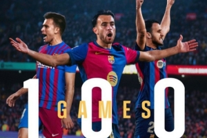 這是埃里克-加西亞代表巴薩各項賽事第100次出場,他在此前的比賽中為球隊貢獻(xiàn)4球3助攻。