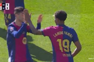 體育資訊03月30日訊 西甲第29輪,巴塞羅那vs赫羅納。比賽第44分鐘,亞馬爾任意球打在了克雷吉奇的身上彈進球門,巴薩1-0領(lǐng)先!